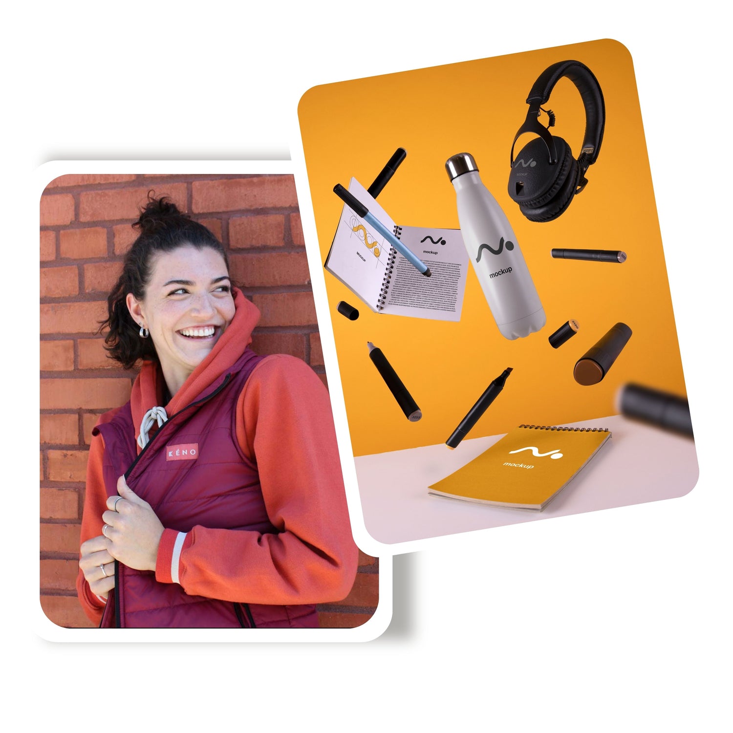 Branded totes, slim notebooks, soft‑touch pens, 20 oz bottles |